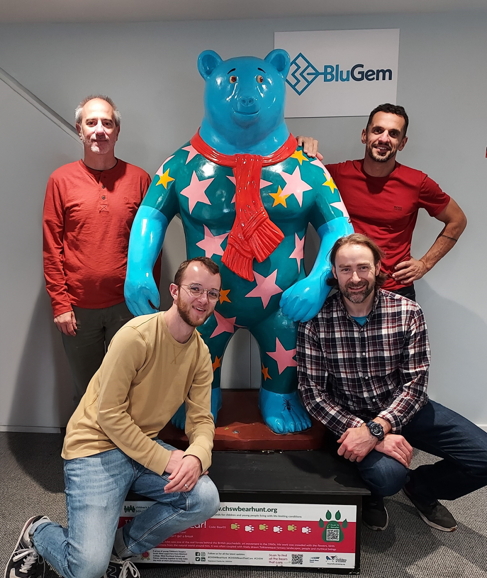 Blue Sky and Dazzling Ursa are two statuesque bears that joined BluGem’s team in 2023 after being auctioned for charity. They were created by local artists for a community arts project in support of Children’s Hospice South West.